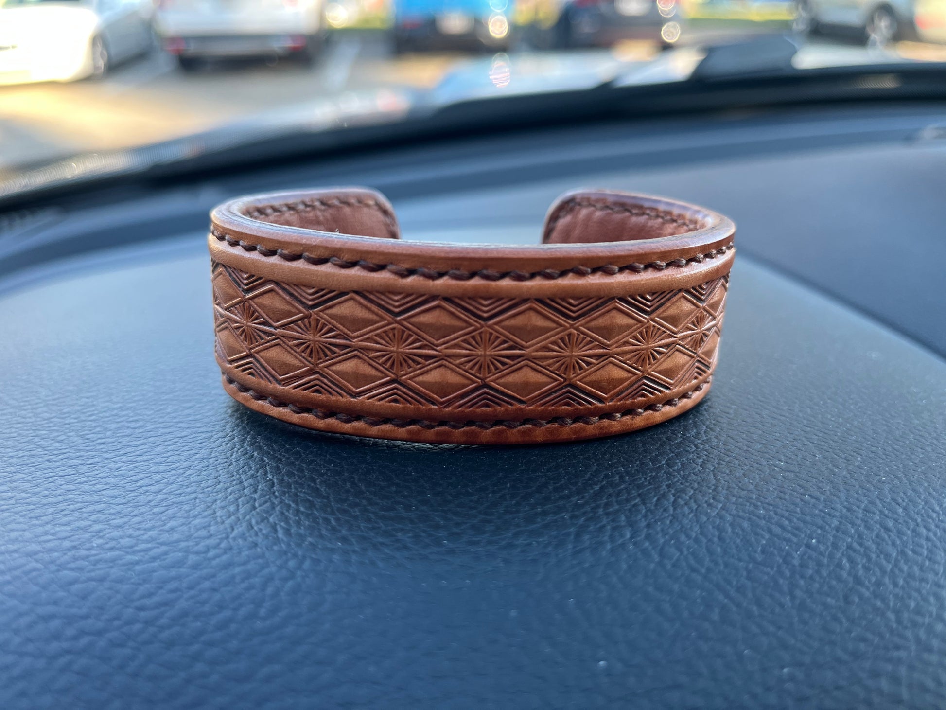 This set of four brass stamps is perfect for those who appreciate classic western leather designs. They can be used on various leather goods, including wallets, bags, belts, straps, and more. With these high-quality brass stamps, you are guaranteed to create unique design variations that will impress those who see your work. Included in this set are the Standard Rope Basketweave, Standard Hollow Diamond, Standard Border Flower, and Standard Sunburst Borderfill stamps. Add these stamps to your collection to enhance your leather crafting skills!