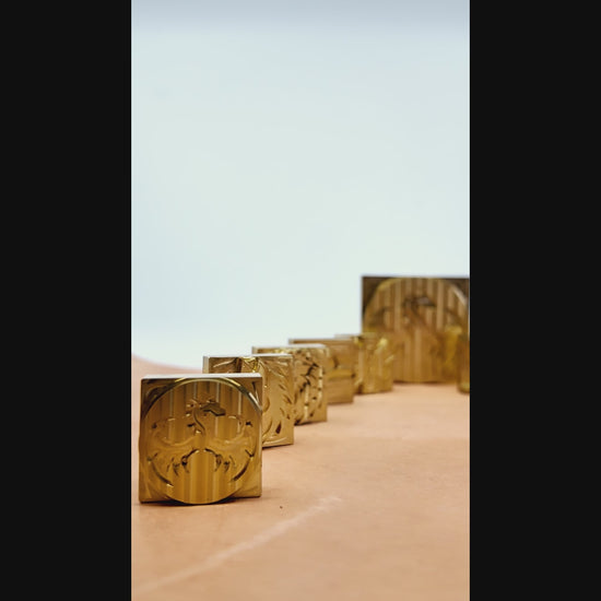 Custom brass plate stamps. 3/8" thick with 0.1" engraving thickness. Upload image or vector files only.