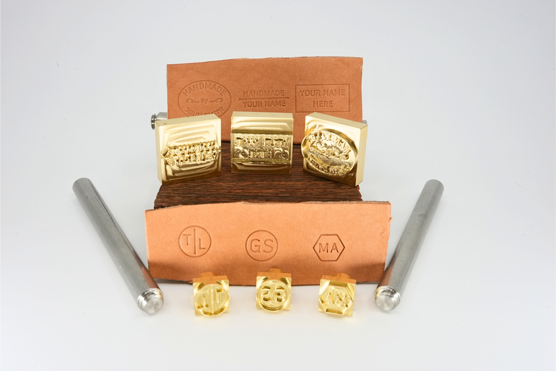 Make your leather work unmistakably yours with Customizable Preset Stamps that set your creations apart from the rest. These brass stamps give you the power to stamp your personal mark by Name on every project. Build brand recognition and customer loyalty with consistent, professional branding. Let your craftsmanship speak for itself and transform casual buyers into devoted fans of your distinctive work.
