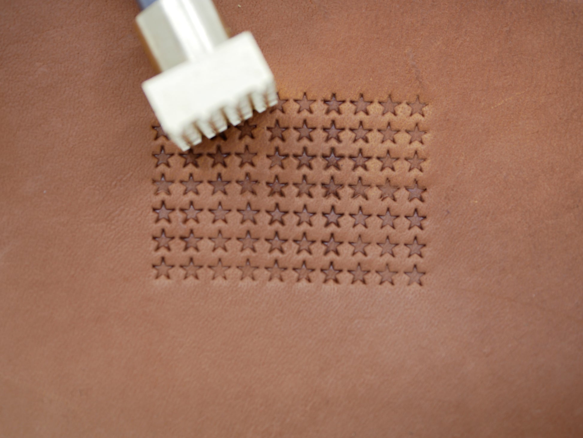 Create refined, high-quality leather masterpieces with the Repeating Star B215. Made of durable solid brass, this leather stamping tool adds a touch of sophistication and elevates your products to a new level of craftsmanship. Its elegant design exudes both class and patriotism and is perfect for expert craftsmen looking to take their creations to the next level.
